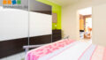 Neudorf, helle Wohnung in zentraler ruhiger Lage mit Gartennutzung. Der großzügige Wohnraum mit offener kleiner Küche bietet ein modernes Sofa mit Flachbildschirm und einen Essbereich am Fenster. Das separate Schlafzimmer ist mit einem französische Bett und einem großen modernen Kleiderschrank eingerichtet. Das Tageslichtbad ist ebenfalls hell gefliest und mit einer Dusche und einem Handtuchwärmer ausgestattet.