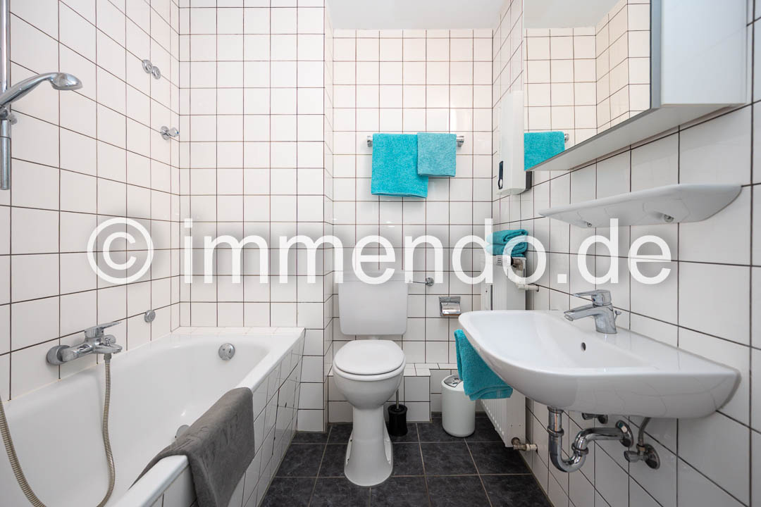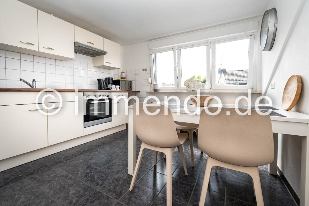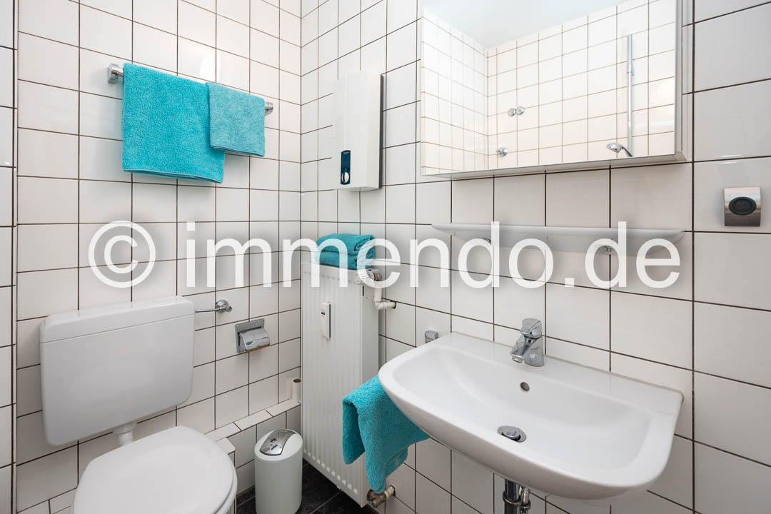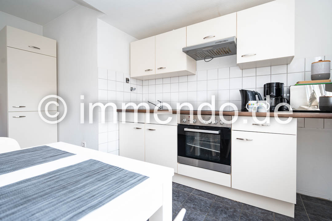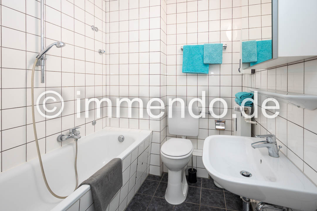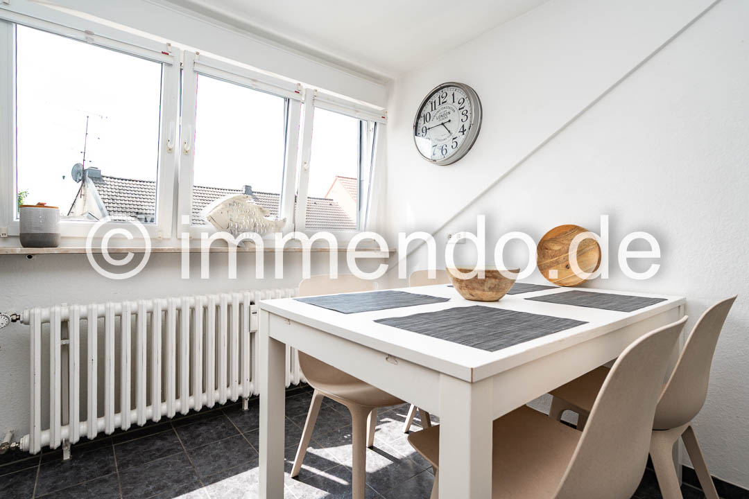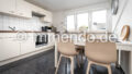 Dellviertel, sehr zentral gelegene möblierte Wohnung am Dellplatz. Die vielen Fenster verleihen der modernen Wohnung eine freundliche Atmosphäre und bieten eine wunderschöne Aussicht über die Dächer des Dellviertels. In der geräumigen Küche können gut vier Personen am Esstisch speisen. Das Wohnzimmer bietet eine einladende Sofalandschaft sowie eine gemütliche Leseecke. Beide Schlafzimmer sind jeweils mit einem Boxspringbett und mit einem Kleiderschrank ausgestattet. Das hell geflieste Badezimmer verfügt über eine Badewanne mit Duschfunktion sowie einen Spiegelschrank. Ein Wasch- und Trockenraum befindet sich praktischerweise auf derselben Etage.