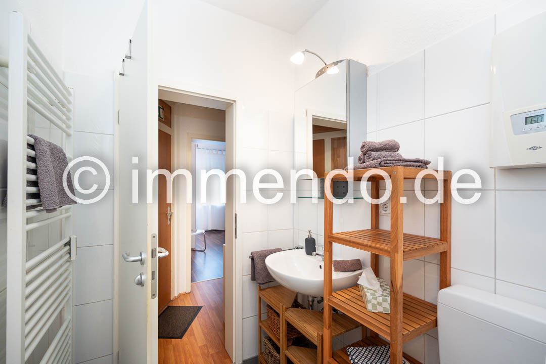 Premium Nähe Landschaftspark, ansprechende Wohnung mit herrlicher Terrasse, im ruhigen Zweifamilienhaus. Alle Fenster der Wohnung verfügen über elektrische Rollos. Der großzügige Wohnraum mit traumhaft schönem Dielenboden bietet ein einladendes Sofa, einen Flachbildschirm und einen modernen Essplatz am Fenster. Der angrenzende Raum verfügt über eine zweite separate Schlafgelegenheit mit einem Einzelbett und zusätzlichem Stauraum in einem passenden Kleiderschrank und kann als Arbeitszimmer oder Gästezimmer benutzt werden. Das behagliche Schlafzimmer bietet ein bequemes Doppelbett (160cm) und viel Stauraum in einem Kleiderschrank. Die geräumige, moderne Küche mit Thekenbereich und Zugang zur überdachten Terrasse ist mit einem stylischen Kühl-Gefrierturm in Edelstahl, einer Spülmaschine und einem Ceranfeld mit Backofen bestens fürs Kochen ausgestattet. Das moderne Badezimmer bietet eine ebenerdige Dusche.
