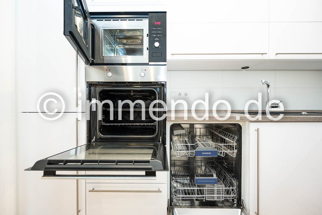Einbauküche, Backofen, Mikrowelle, Spülmaschine, Balkon, Smart TV, W-LAN, Internet, Handtücher, Bettwäsche, Laminat, Fliesen, Doppelbett, Queen Size 160cm, Waschmaschine, Trockner, franz. Bett 140cm, Dusche, Wannenbad, komfortabel, Teppichboden, Schreibtisch