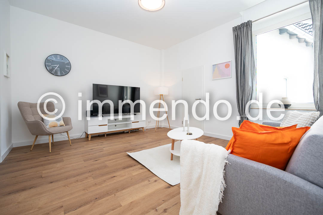 Rheinhausen, sehr schöne sanierte und neu möblierte Wohnung mit Gartennutzung. Der schick eingerichtete Wohnraum bildet das Zentrum der in 0825 sanierten Wohnung und ist mit einem bequemen Sofa, einem Sessel und einem 65 Smart-TV ausgestattet. Von hier gelangt man in das großzügige Schlafzimmer mit einem Kleiderschrank, einem weiteren Sessel und 2 Einzelbetten, welche auch zusammen gestellt werden können. Die Wohnküche ist mit einer Einbauzeile inklusive Spülmaschine, Ceranfeld, Backofen, Mikrowelle, einer separaten Kühl-Gefrierkombination und einem Essplatz gut ausgestattet. Das sanierte Bad im modernen Look bietet eine Wanne mit Regendusche und eine praktische Handtuchheizung. Der Garten darf mitbenutzt werden.