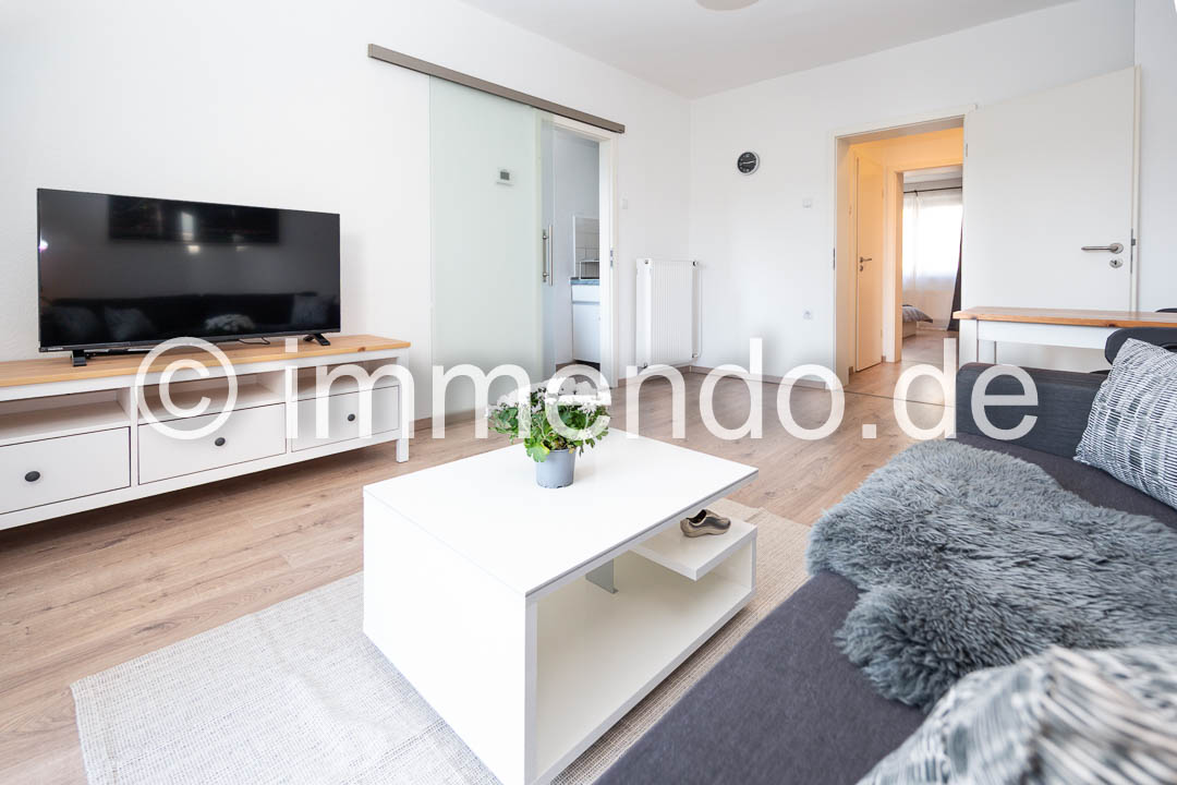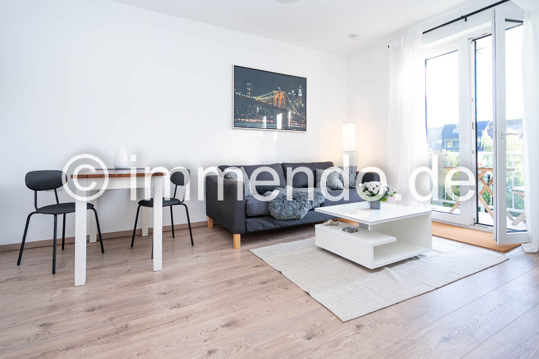 Duissern, schöne modern möblierte Wohnung mit Balkon. Die Wohnung ist modern möbliert und verfügt über eine gut durchdachte Raumaufteilung. Der helle Wohnraum mit einem bequemen Sofa und einem großen Smart-TV bietet den Zugang zum einladenden Balkon mit Blick in die gepflegte, grüne Hinterhofidylle und in die kleine Küche , die mit einem Gasherd und einem Kühlschrank mit Gefrierfach ausgestattet ist. Das separate Schlafzimmer bietet ein komfortables Bett und Stauraummöglichkeiten. Das modern geflieste Bad ist mit einer Dusche ausgestattet.