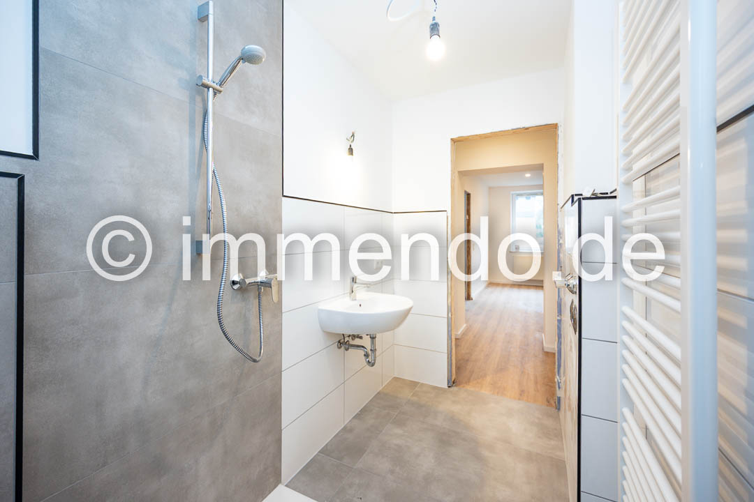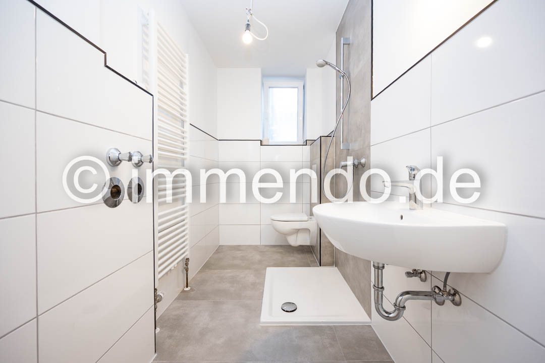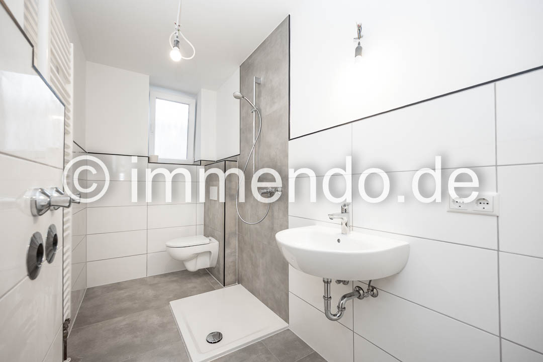 Das Tageslichtduschbad ist geräumig und mit einer fast bodentiefen Dusche ausgestattet.