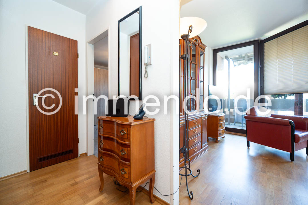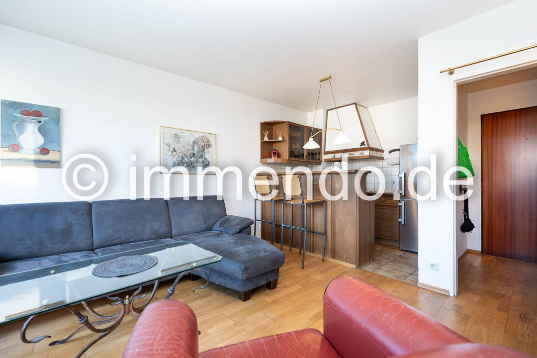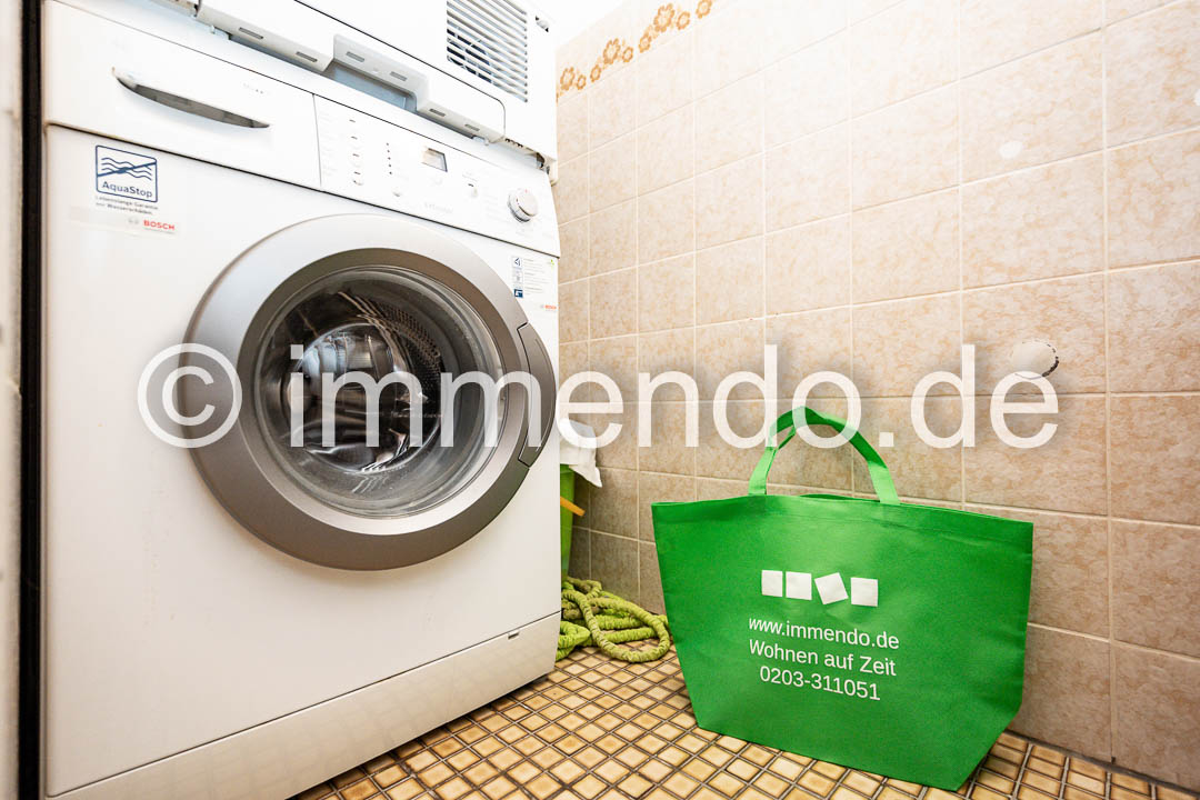 Moers-City, möbliertes Apartment mit Balkon in zentraler Lage und einfachem Standard. Das Wohnzimmer verfügt über bodentiefe Fenster und bietet ein bequemes Ecksofa mit großem Flachbildschirm und eine offene Küche mit Theke, die mit einer Kühl-Gefrierkombination, einem Herd mit Backofen und einer Mikrowelle ausgestattet ist. Das separate Schlafzimmer bietet ein französisches Bett, einen großen Schiebetürenschrank und einen direkten Zugang zum Bad mit Glastrennwand und Regenwalddusche. Die Waschmaschine und der Trockner sind im Abstellraum untergebracht.