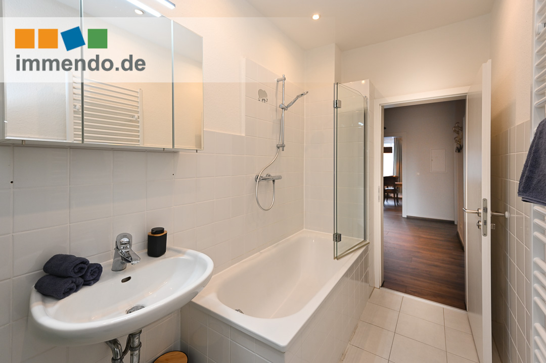 • City, stylisch möblierte Wohnung in sehr guter zentraler Lage mit Balkon. Die großzügige Aufteilung mit passenden Designelementen setzt sich in allen Zimmern fort. Der schön gestaltete Wohnraum mit Zugang zum Balkon bietet ein elegantes Ledersofa, einen massiven Couchtisch und ein Sideboard mit Flachbildschirm. Das Schlafzimmer ist mit einem bequemen Bett und zwei Schränken ausgestattet. Das separate Esszimmer verfügt über einen großen Esstisch und kann auch als Arbeitszimmer genutzt werden. Die große Wohnküche in edlem Naturholz mit Spülmaschine, Ceranfeld, Backofen, Kühl-Gefrierturm und einer praktischen Spülmaschine u.a. lässt keine Wünsche offen. Das moderne Badezimmer bietet eine Badewanne mit Duschgelegenheit.