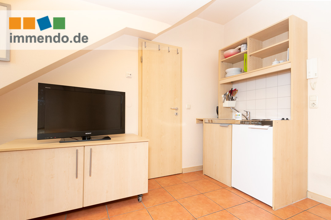 • Saarn, freundlich möbliertes Apartment in zentraler Lage. Der helle Wohnraum bietet ein behagliches Einzelbett, einen geräumigen Kleiderschrank, einen Flachbildschirm, einen Essplatz am Fenster, der auch zum Arbeiten genutzt werden kann und eine kleine Küchenzeile, die fürs kleine Kochen bestens ausgestattet ist. Das gepflegte Badezimmer verfügt über ein Fenster und ist mit einer Dusche ausgestattet.