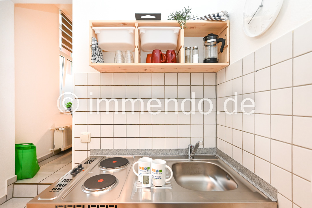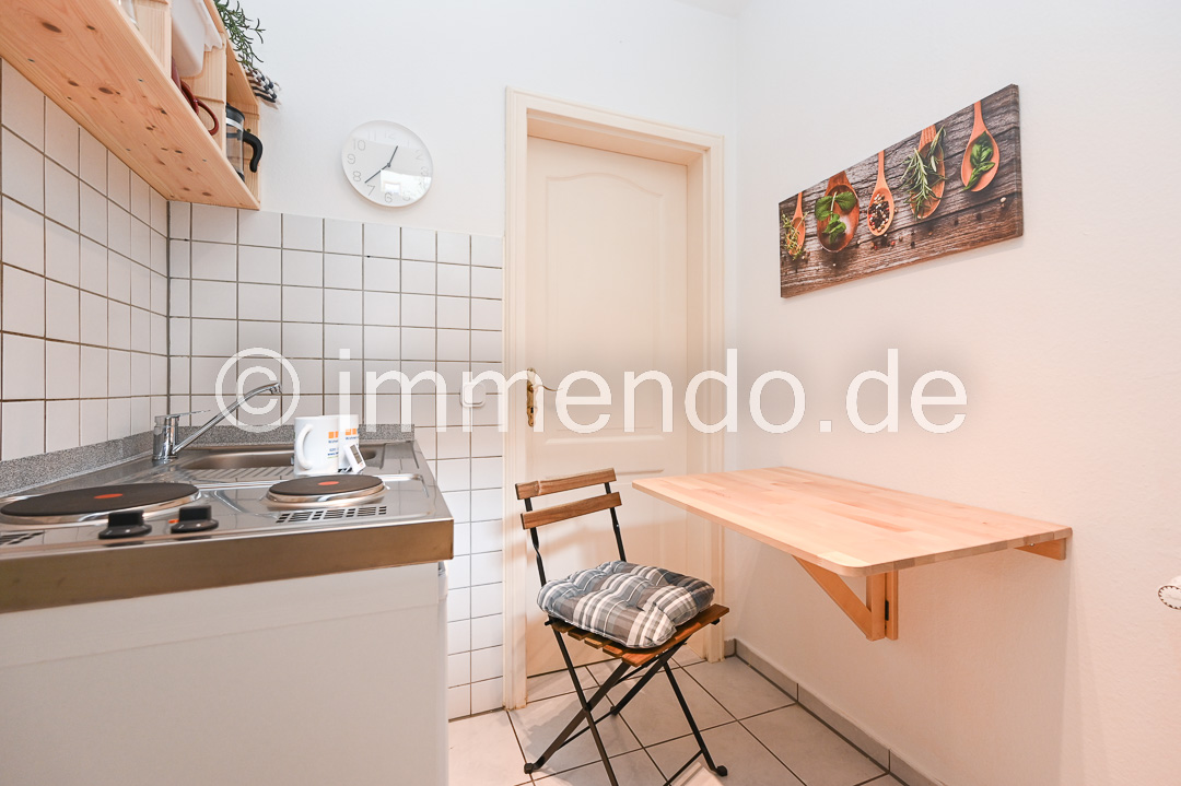 • Styrum, helles modern möbliertes Apartment in zentraler Lage mit Sitzmöglichkeit im wunderschön gestalteten Innenhof. Der helle Wohnraum bietet ein Einzelbett, einen Kleiderschrank und einen schön gestalteten Wohnbereich mit großem Smart-Tv. Die komplett ausgestattete, kleine Kochküche verfügt über eine Mikrowelle, 2 Herdplatten und einen Kühlschrank mit Gefrierfach. Das geräumige Bad mit Glasdusche ist weiß gefliest.