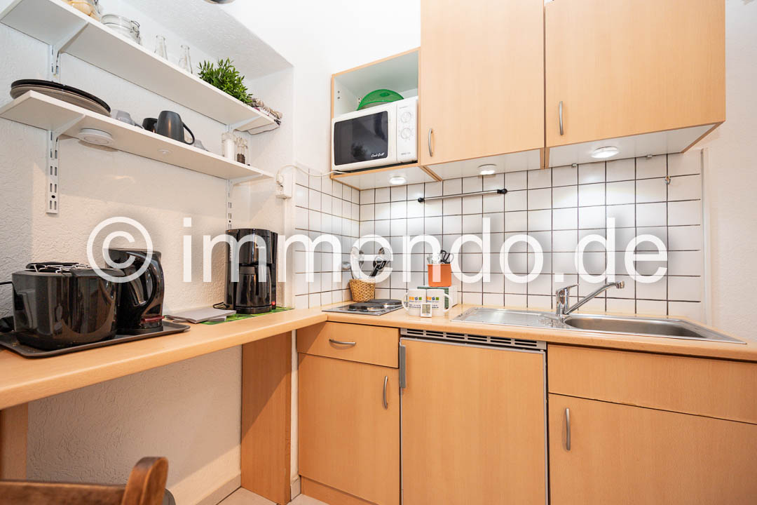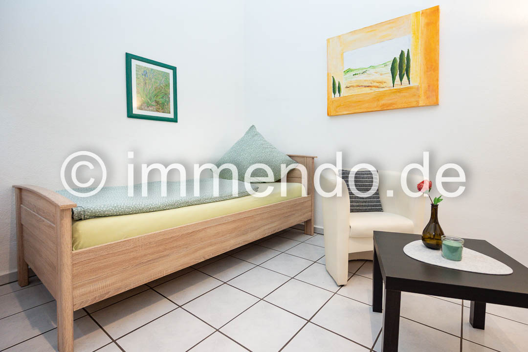 Styrum, helles, freundlich möbliertes Apartment in sehr ruhiger Lage mit Terrassenbereich und wunderschön gestaltetem Innenhof. Der großzügige Wohn-Schlafraum ist mit einem Fernsehsessel, einem Fernseher und einem Einzelbett ausgestattet. Die Küchenecke bietet zwei Herdplatten, eine Mikrowelle und einen einladenden Essplatz. Das geräumige Wannenbad mit Fenster ist weiß gefliest. Waschmaschine und Trockner sind im Haus vorhanden.