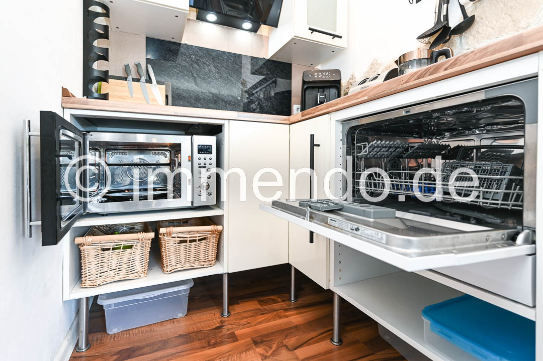 Balkon, W-LAN, Spülmaschine, Einzelbett, Internet, Laminat, Mikrowelle, offene Küche, Tel-dose, Trockner, Waschmaschine, Bettwäsche, Reinigung, Duschbad, Einbauküche, Handtücher, Smart TV, Schreibtisch
