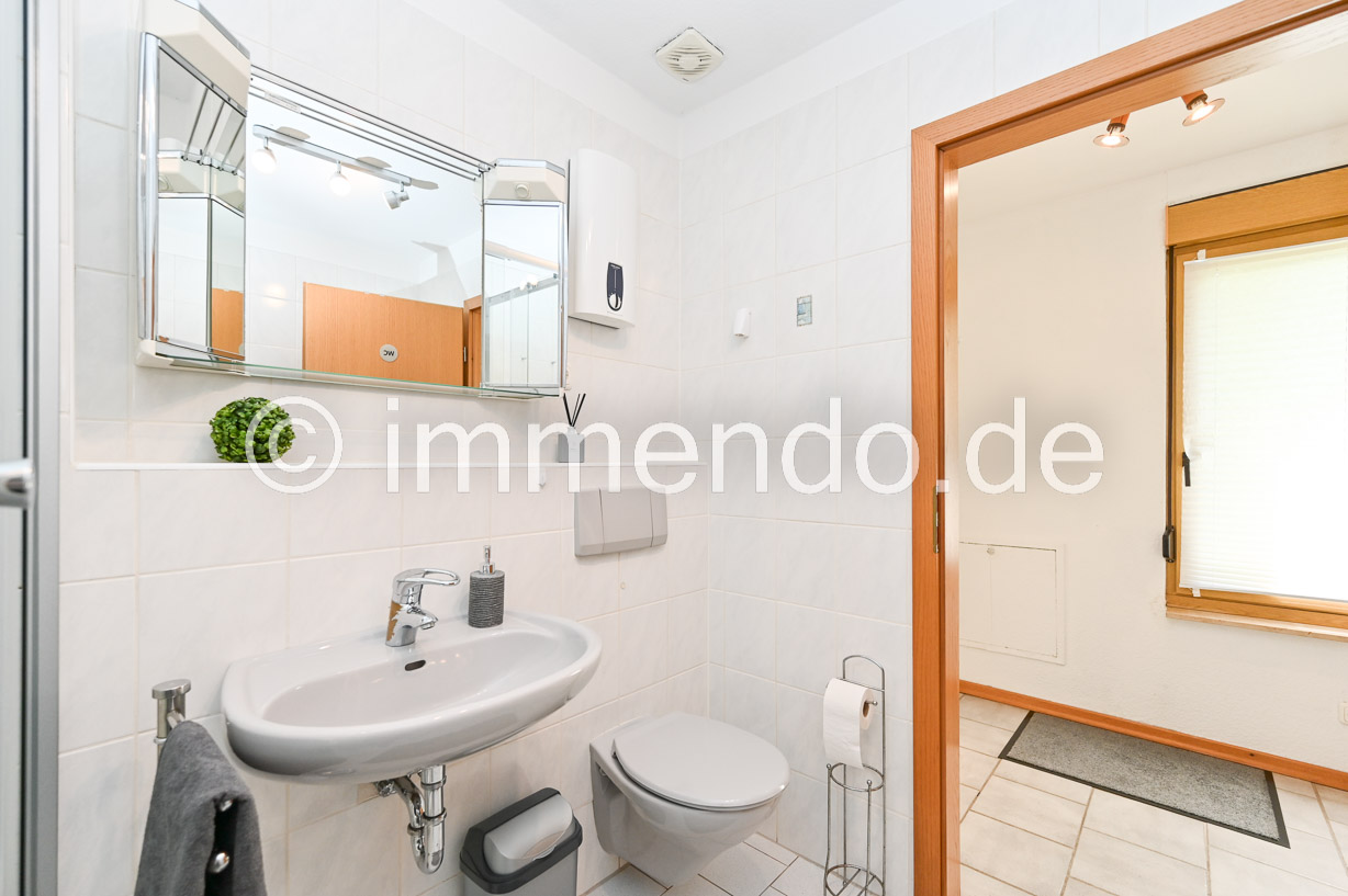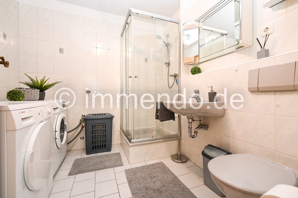 Saarn, helle möblierte Wohnung im Anbau in traumhaft ruhiger Lage. Das freundliche, geräumige Wohnzimmer mit Durchreiche zur Küche ist mit einer bequemen Sofagarnitur mit Schlaffunktion, einem Flachbildfernseher, einer Stereoanlage und einem großzügigen Essplatz ausgestattet. Die Küche bietet einen Herd mit Backofen, einen Kühlschrank, eine Spülmaschine und eine Mikrowelle. Das Schlafzimmer verfügt über ein Doppelbett und viel Stauraum in einem Spiegelschrank. Das Duschbad ist hell gefliest und mit einer Waschmaschine und einem Trockner gut ausgestattet. Fußbodenheizung und Rollläden runden das komfortable Wohnen ab.