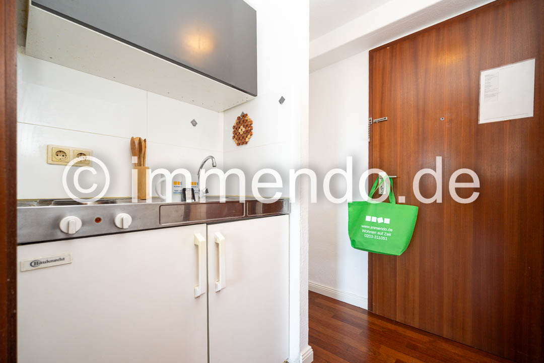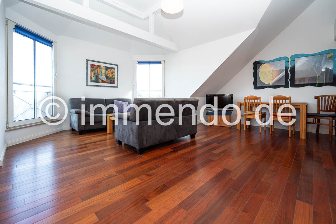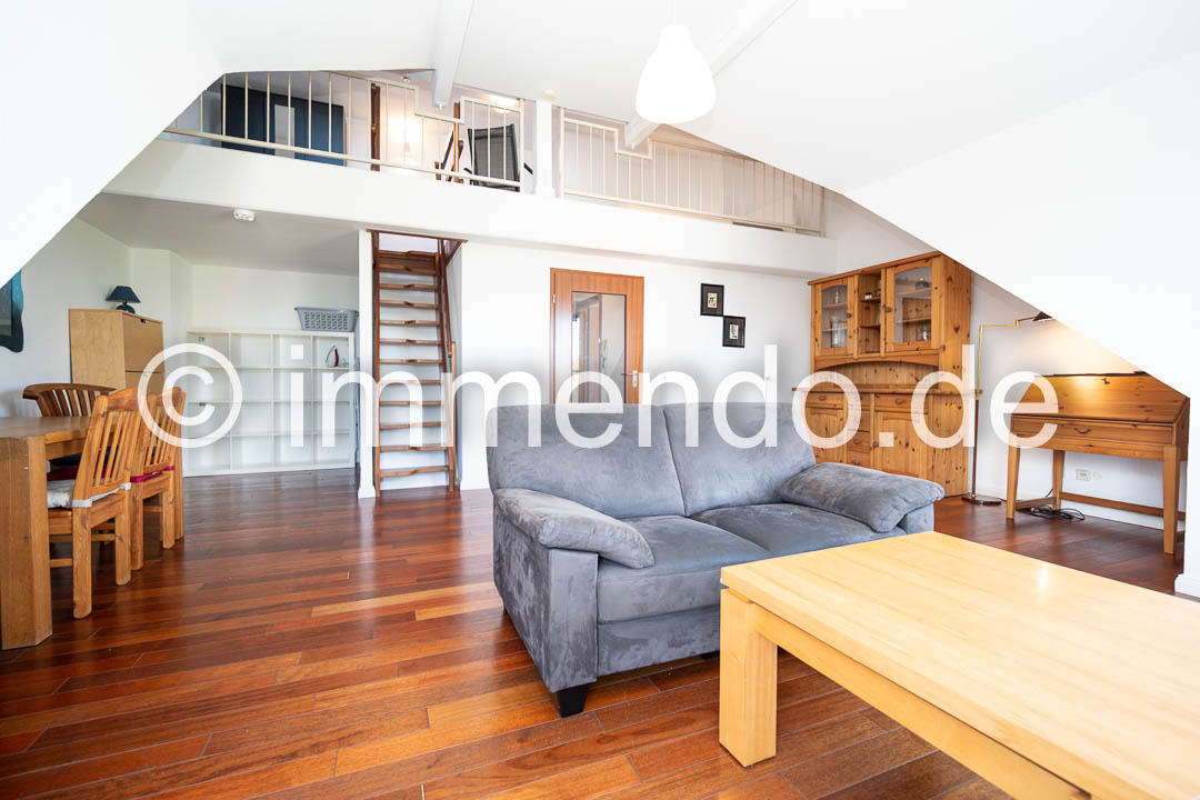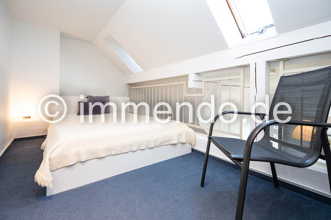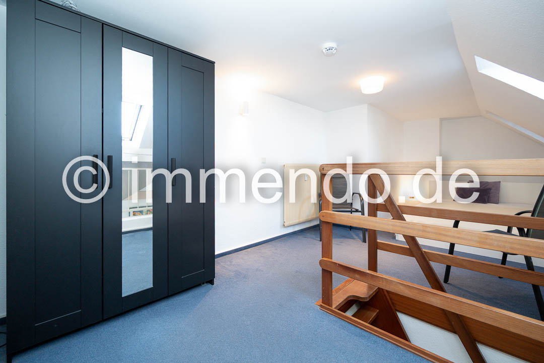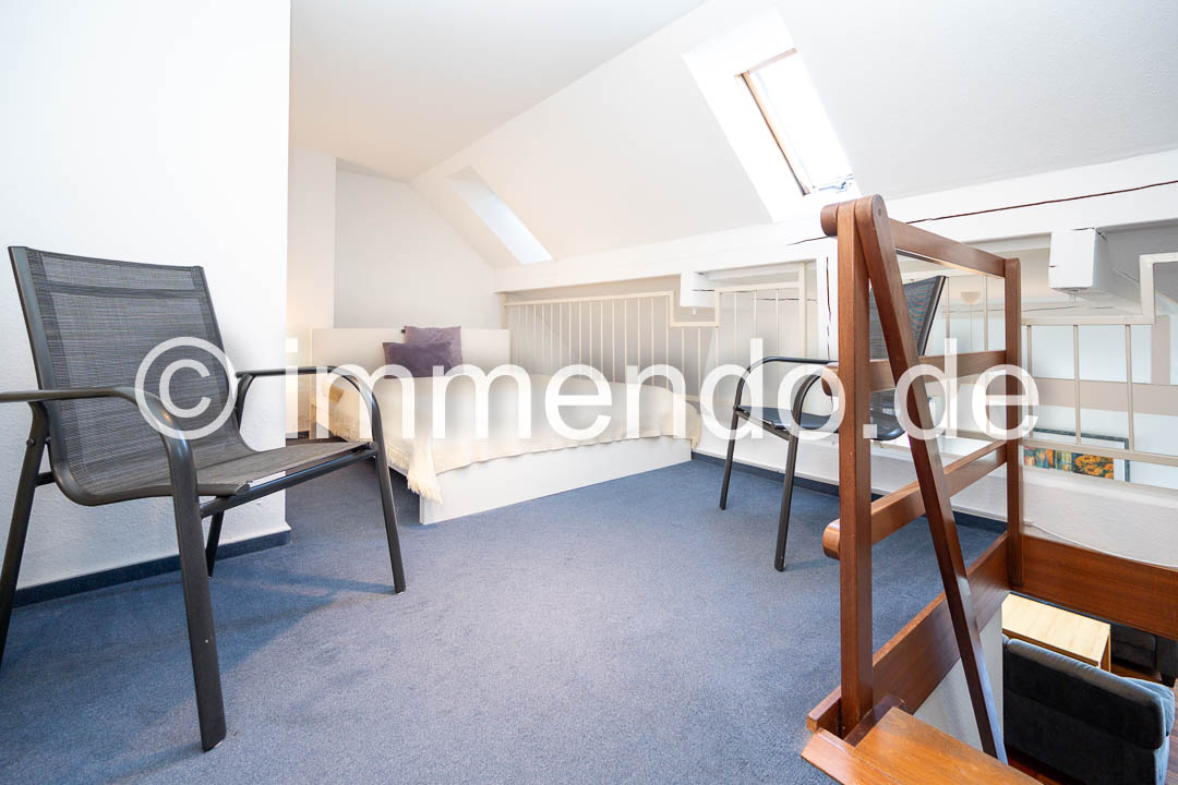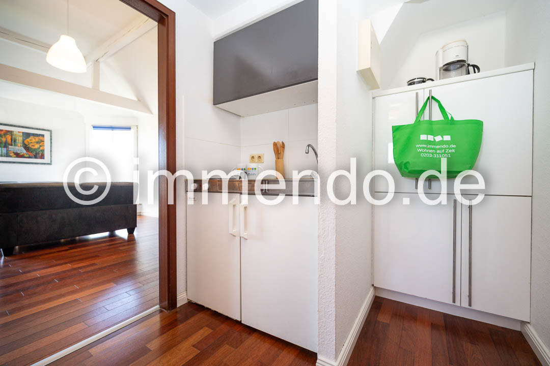 • Speldorf, möblierte Wohnung auf 2 Etagen mit großzügiger Wohnfläche. Der lichtdurchflutete Wohnraum mit Parkettboden in Mahagoni bietet einen einladenden Wohnbereich vor den hohen Erkerfenstern mit 2 bequemen Sofas und einem Flachbildfernseher. Ein Essbereich ist in den Raum integriert und auch Stauraum in einer Vitrine und einem praktischen Regal wird geboten. Das Schlafzimmer befindet sich in der Galerie als Rückzugsort und wird über eine Raumspartreppe erreicht. Hier stehen ein französisches Bett und ein Kleiderschrank zur Verfügung. Die Pantryküche ist mit zwei Herdplatten, einem Kühlschrank und weiterem Stauraum bestens ausgestattet. Das hell gefliestes Tageslichtbad verfügt über eine Duschkabine.