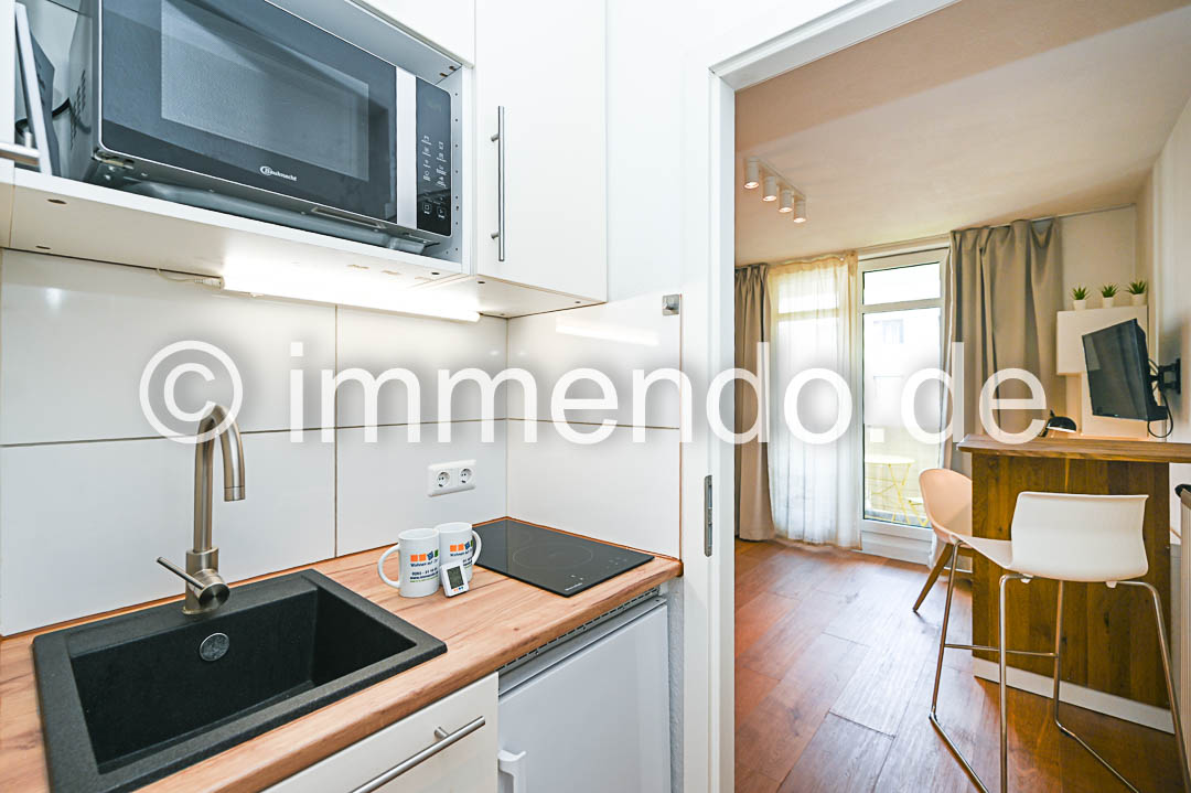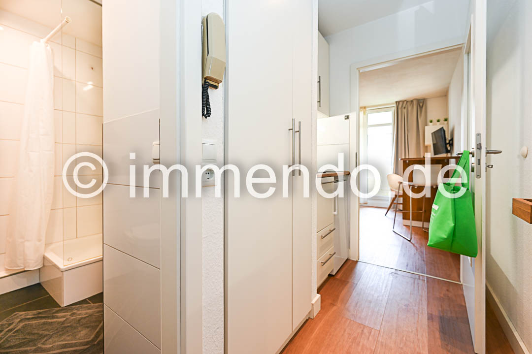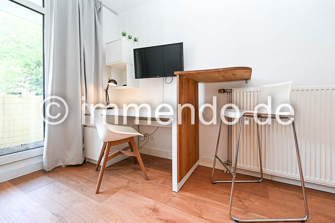 • Speldorf, ansprechendes, modernes Apartment mit Balkon. Der schöne Wohn-Schlafraum mit maßgefertigtem Stauraum bietet einen komfortablen Schlafbereich, einen Arbeitsbereich am Fenster mit Zugang zum Balkon, ein modernes Smart-TV und einen einladenden Sitzplatz. Der Design-Vinylboden in Holzoptik unterstreicht zusätzlich die Behaglichkeit. Im Flurbereich ist eine kleine Küche mit Induktionskochfeld, einem Kühlschrank mit Gefrierfach und einer Mikrowelle mit Grillfunktion bestens untergebracht. Das exklusive Duschbad mit Regendusche und Glasabtrennung lässt keine Wünsche offen. Ein Waschtrockner ist in der Küchenzeile. Ein Tiefgaragenstellplatz kann angemietet werden.