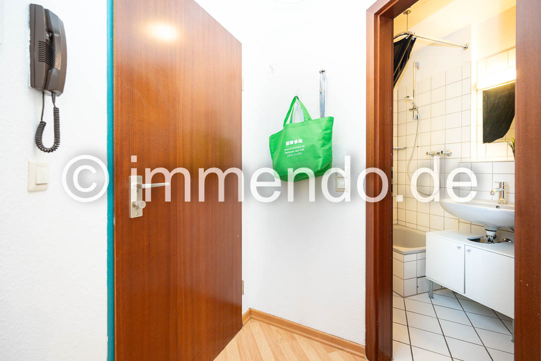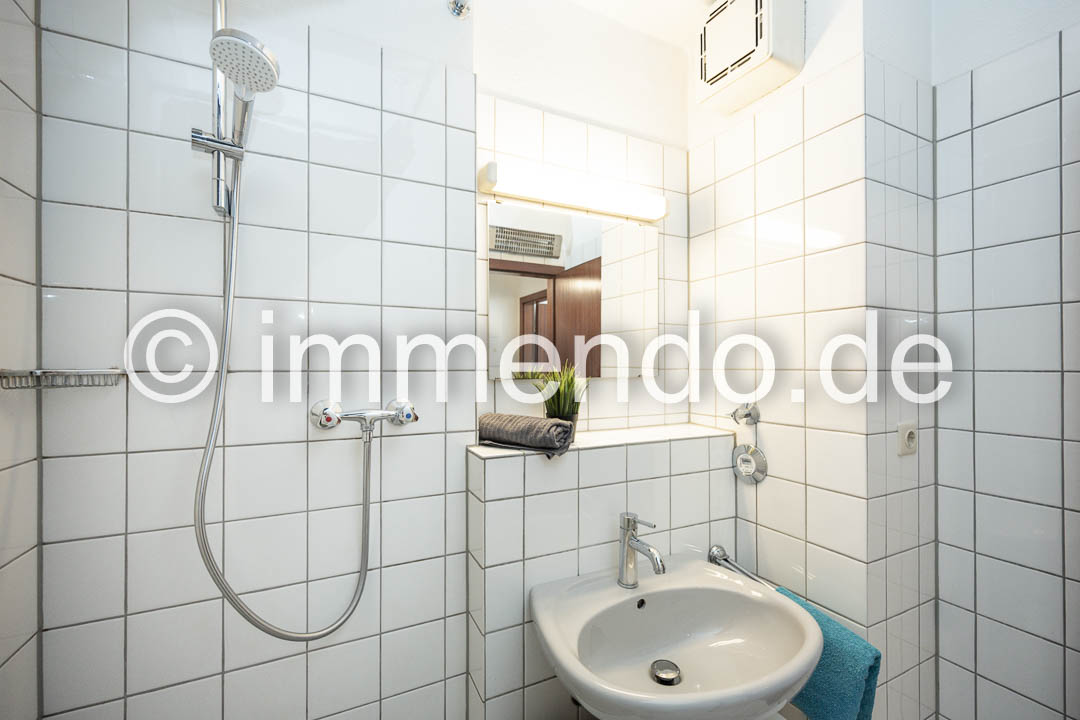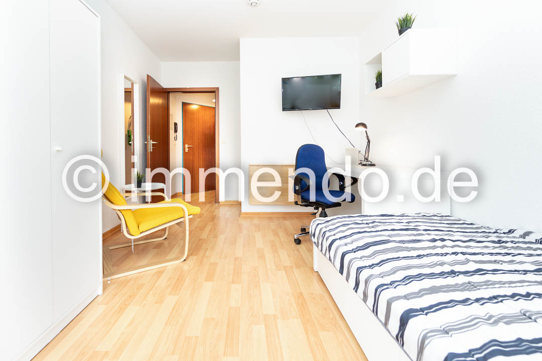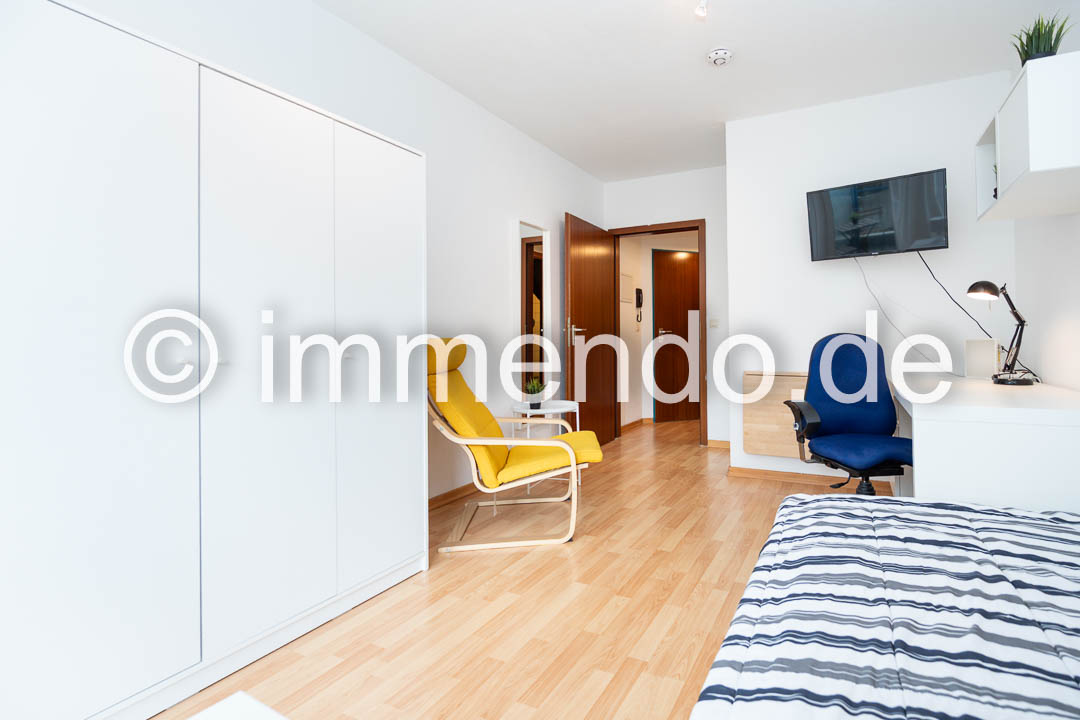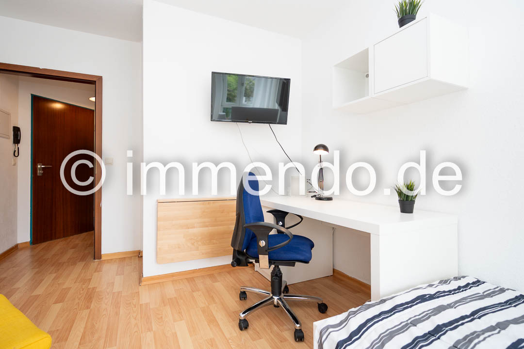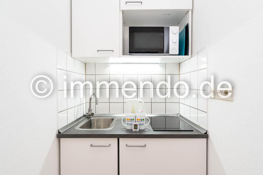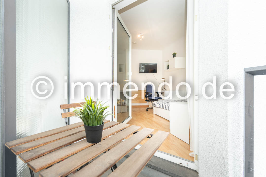 • Speldorf, freundlich modern möbliertes Apartment mit Balkon in verkehrsgünstiger Lage an der Stadtgrenze zu Duisburg. Über einen kleinen Flur gelangt man in den hell möblierten Wohnraum, der einen bequemen Sessel mit Smart-TV, einen funktionellen Arbeitsbereich, einen geräumigen Kleiderschrank, ein Einzelbett mit zusätzlichem Stauraum und dem Zugang zum kleinen Balkon bietet. Eine Pantryküche im Flurbereich ist gut fürs kleine Kochen mit einem Induktionskochfeld, einer Mikrowelle und einem Kühlschrank mit Gefrierfach ausgestattet. Das Bad verfügt über eine Dusche.