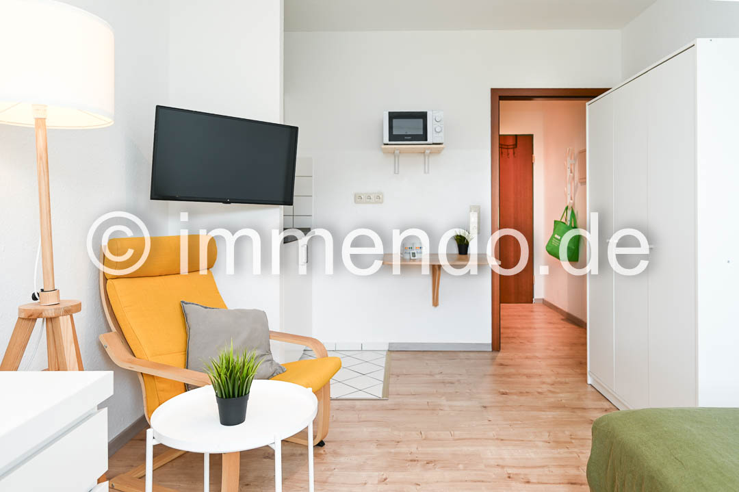 Speldorf, einladend modern möbliertes Apartment zentral gelegen mit Balkon. Das Apartment wird zur Zeit(1125) für Sie renoviert und neu möbliert. Die Fotos und das Video gehören zu einem ähnlichen Objekt im gleichen Haus. Dieses Objekt bietet zusätzlich einen kleinen Balkon. Gut durchdachter Wohnraum zum Wohlfühlen mit einem schönen Arbeitsbereich, einem gemütlichen Sessel, Smart-TV und einem Schlafbereich mit Einzelbett und Kleiderschrank. Gut ausgestattete Pantryküche mit Doppelkochplatte, Mikrowelle und kleinem Kühlschrank, perfekt fürs kleine Kochen. Gefliestes Duschbad mit Stauraum.