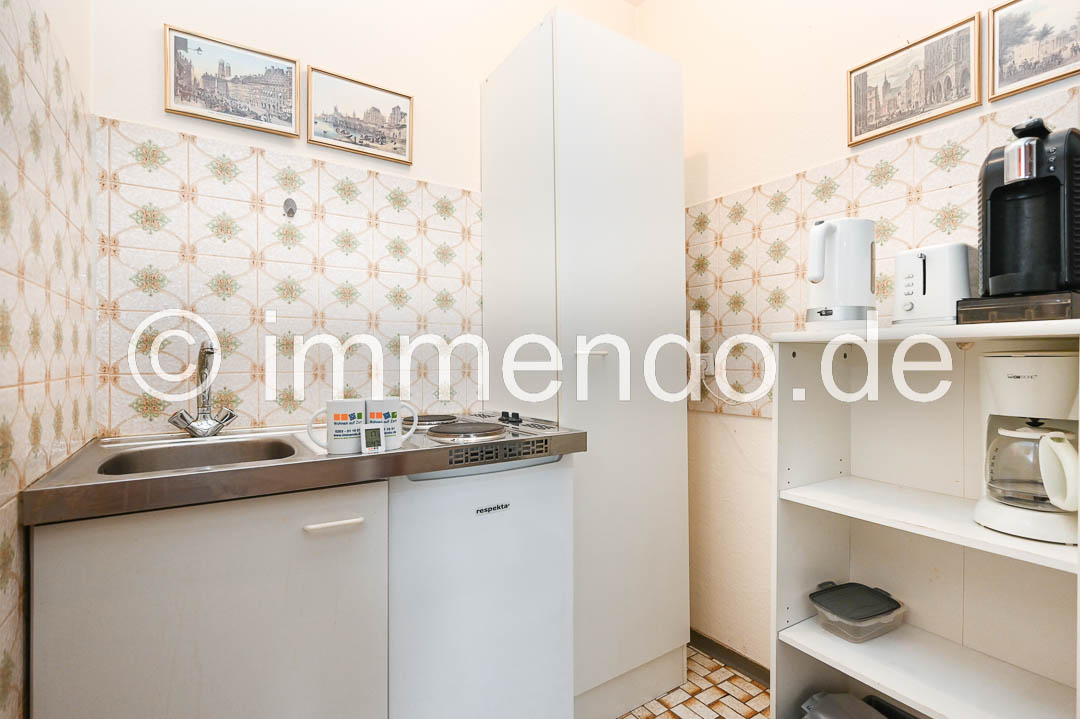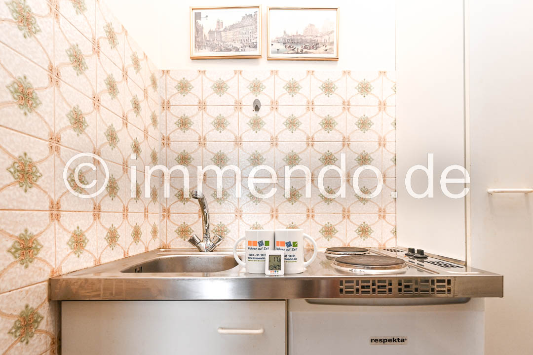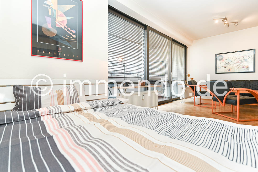 City, helles möbliertes Apartment mit großem Balkon in zentraler Lage. Der einladende Wohnraum mit Zugang zum großzügigen Balkon ist mit einer Sitzgruppe aus Leder, einem Flachbildschirm, einem modernen, französischen Bett 1,40m und einem Regal ausgestattet. Die angrenzende, separate Küche bietet Platz fürs kleine Kochen. Das freundliche, hell geflieste Bad verfügt über eine große, moderne Glasdusche. Stauraum bietet der Schrank im Eingangsbereich.