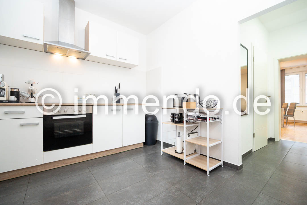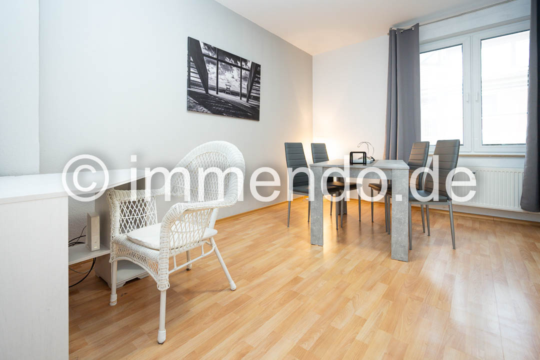 Oberhausen, elegant und modern möblierte Wohnung in verkehrsberuhigter Zone im Knappenviertel. Das helle, geräumige Wohnzimmer ist mit einer großen Sofalandschaft und einem Flachbildschirmfernseher, mit einem schönen Esstisch für vier Personen und mit einem Schreibtisch mit LAN-Anschluss gut durchdacht möbliert. Die äußerst gut ausgestattete Küche mit Ceranfeld und Backofen bietet zudem einen freistehenden Kühlschrank, einen Wasserkocher, Toaster und eine Kapselkaffeemaschine. Sie bietet zusätzlich einen gemütlichen Frühstücksplatz in Form eines Sofas. Durch die Küche gelangt man ins Schlafzimmer, welches zum ruhigen Uhlandpark hinten raus liegt. Hier bietet ein Boxspringbett höchsten Schlafkomfort und durch den Schiebetürschrank ist genügend Stauraum vorhanden. Die Beleuchtung im Schlafzimmer ist dimmbar und die Nachttischlämpchen beinhalten USB Ports zum Laden von elektronischen Kleingeräten. Ausreichend Parkmöglichkeiten gibt es in der Straße.