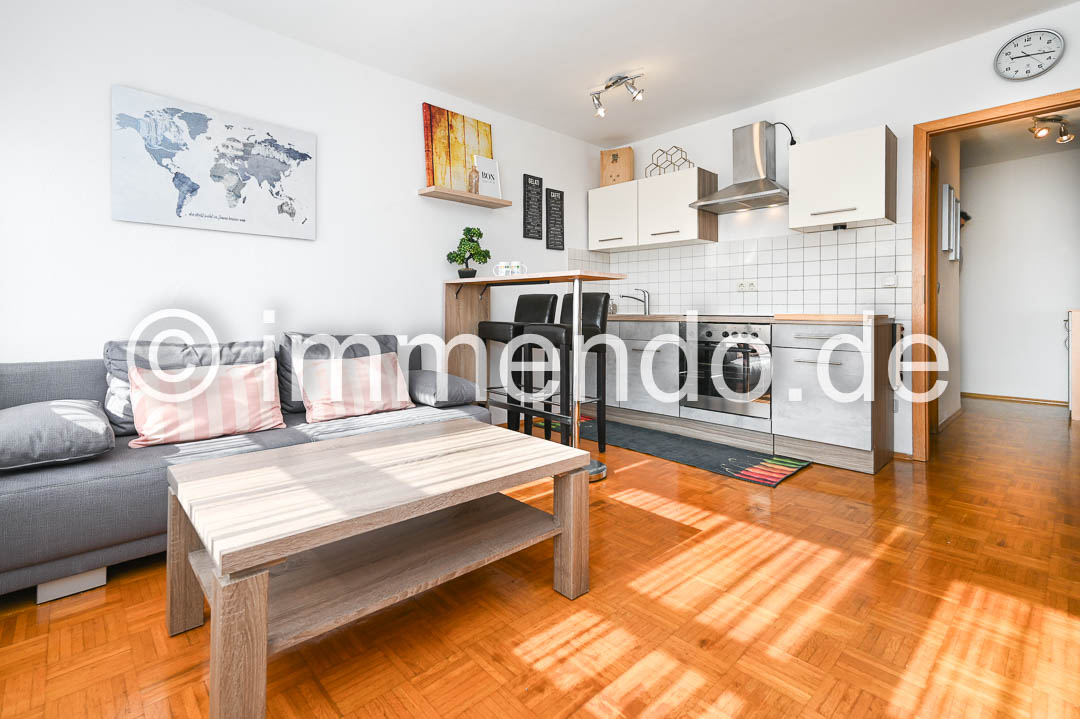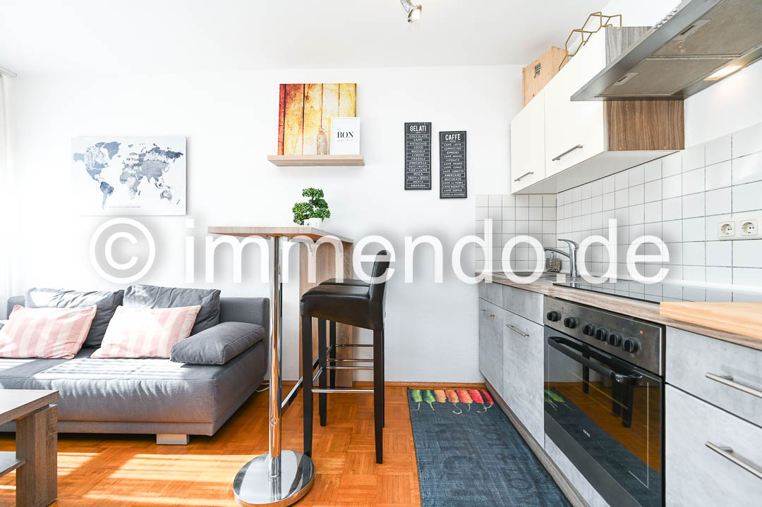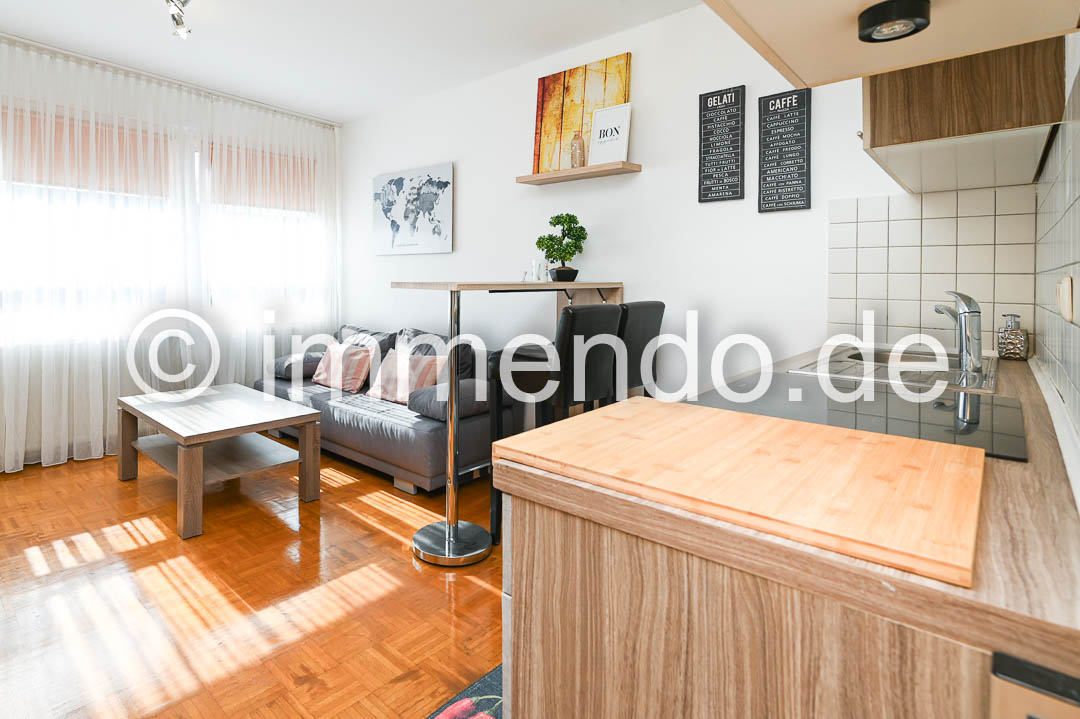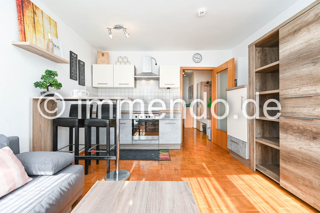 • City, helles, behaglich möbliertes Apartment mit W-LAN. Dieses modern eingerichtete Apartment bietet auf kompakter Fläche alles, was Sie für einen komfortablen Aufenthalt benötigen. Das helle Wohn-Schlafzimmer ist mit einem bequemen Schlafsofa ausgestattet, das sich mit wenigen Handgriffen in eine gemütliche Schlafgelegenheit verwandeln lässt. Die integrierte Küche ist vollständig ausgestattet und bietet neben einem Kochfeld und einem Kühlschrank mit Gefrierfach auch ausreichend Stauraum. Der Essbereich ist funktional gestaltet und ideal für eine Person. Das Apartment eignet sich hervorragend als temporäre Wohnlösung. Das Badezimmer ist hell gefliest und verfügt über eine Dusche.