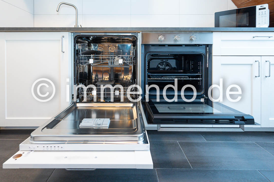 Fliesen, SAT, Duschbad, Spülmaschine, Mikrowelle, Doppelbett, Schlafcouch, Waschmaschine, Trockner, offene Küche, Handtücher, Backofen, Einbauküche
